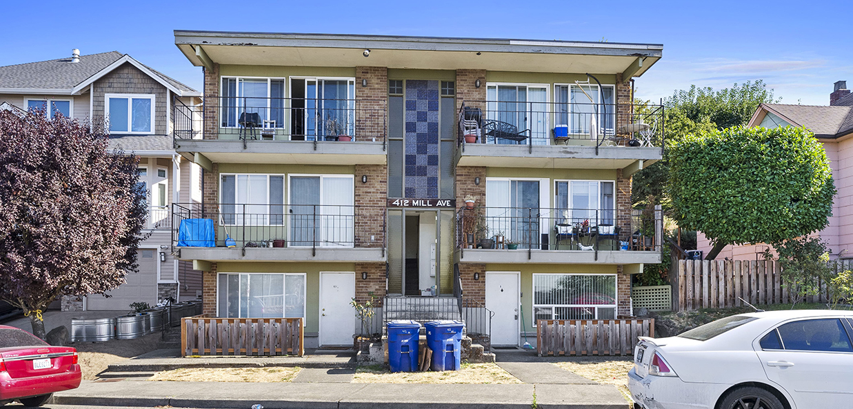 The Mill Apartments include eight one-bedroom one-bath units, and most residences have a private, west-facing patio. Some residences also feature in-unit washer & dryer, and the property also has a community laundry room on-site.