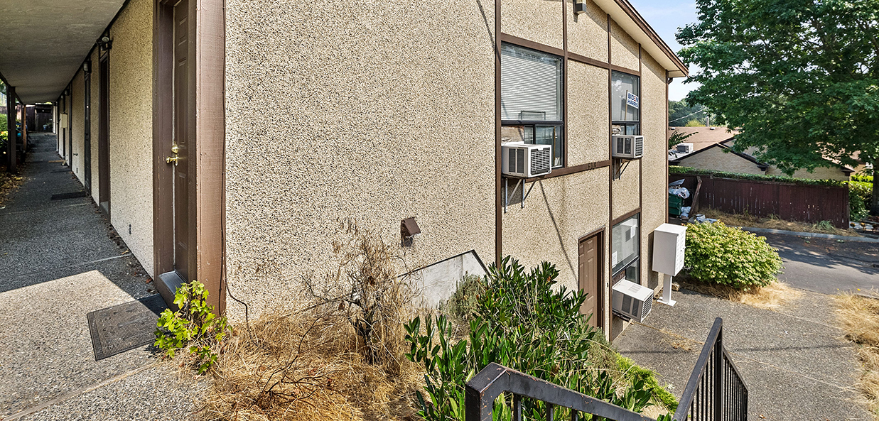 The Sunnydale Apartments – South Tower include 6 studio one-bath units, and one commercial office space. Each unit features a sleeping area partitioned off by a half wall, and a nice sized living area with full kitchen and bath.